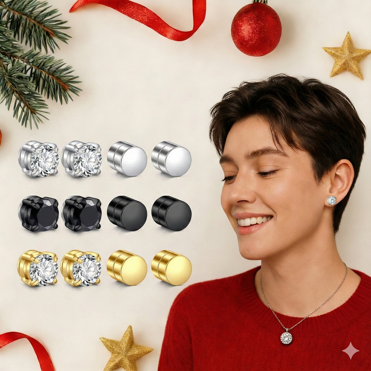 Magnetic Studs for Men - Fake Earrings Clip on Earrings - Sliver/Gold/Black Colors